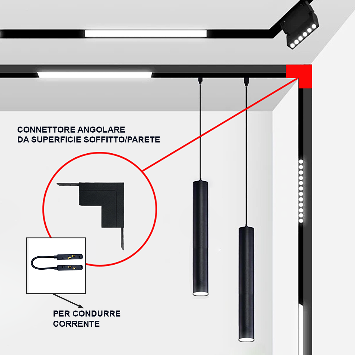Connecteur angle 90° apparent pour rail magnétique Connecteur angle 90° apparent pour rail magnétique